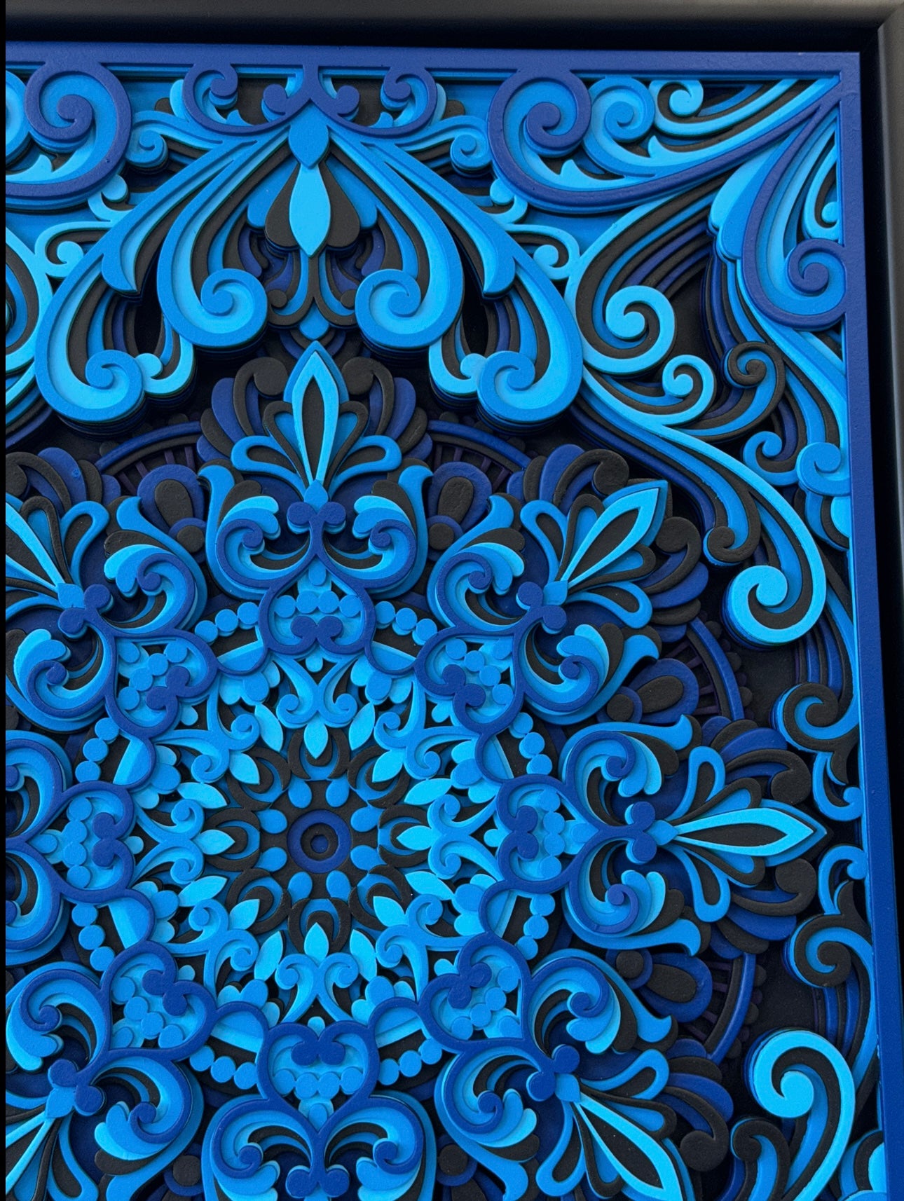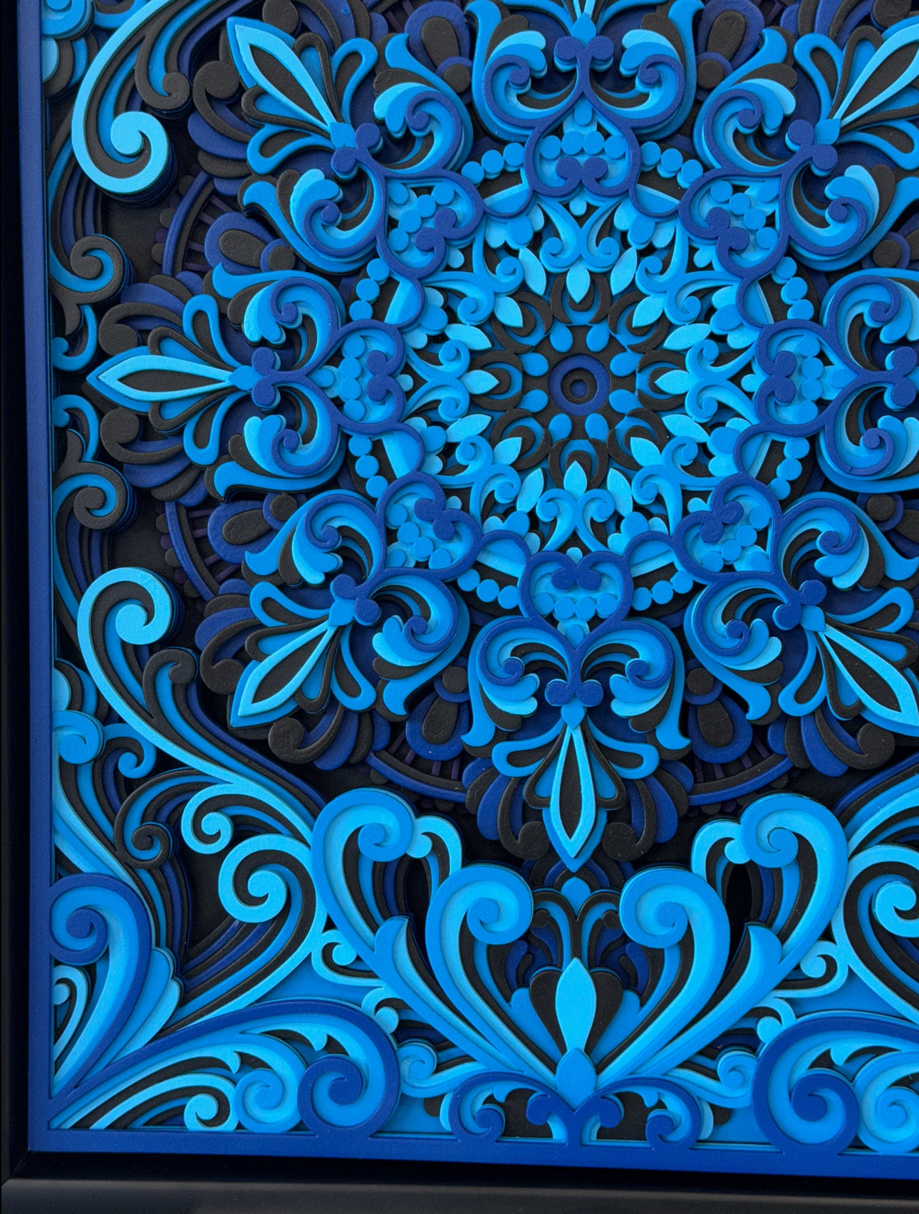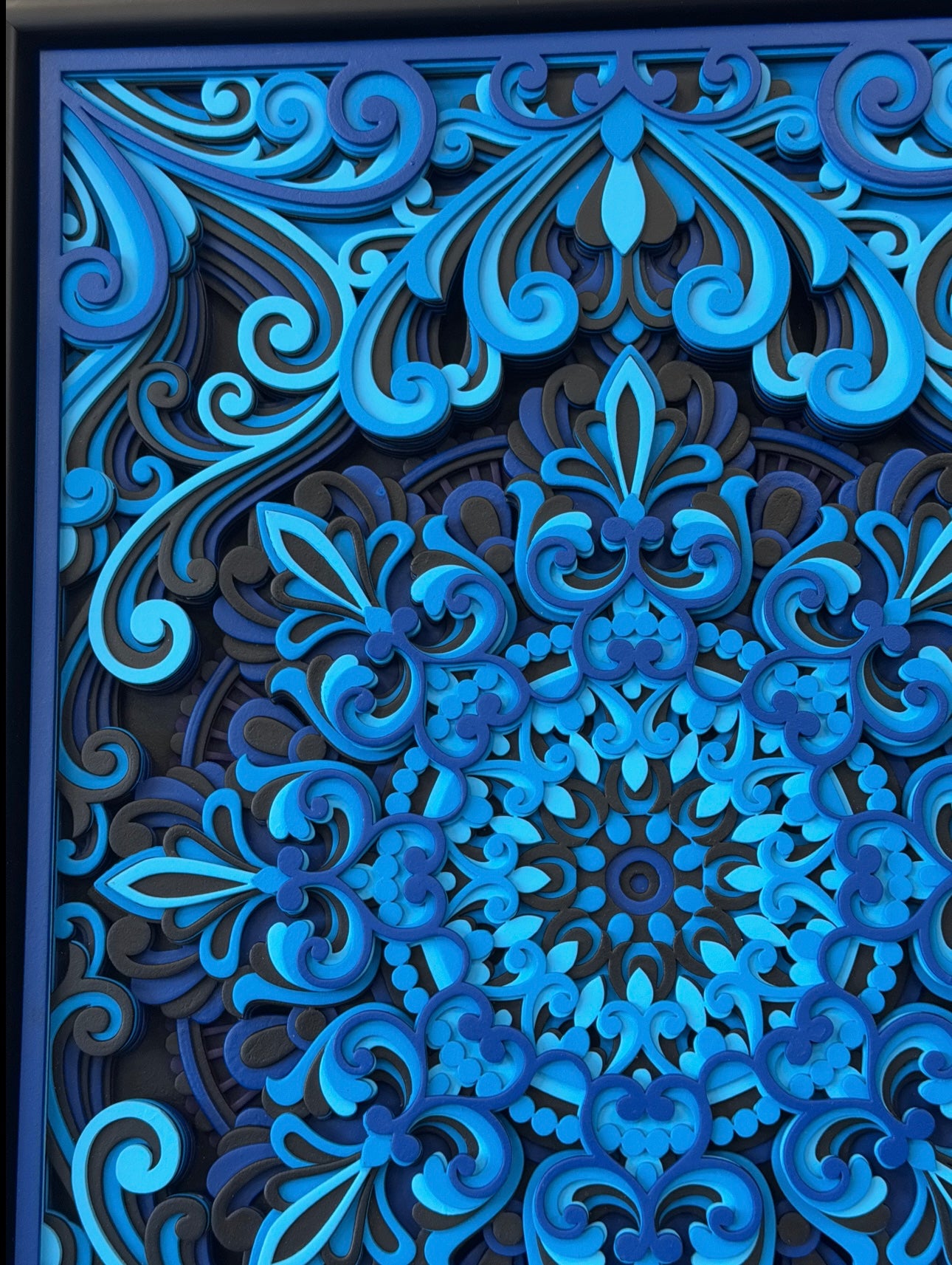 The Multi Layered artwork is made with 12 layers of fine cut wood. It represents the inner world of the dreamer complex, structured, yet flowing with emotion. Every layer is cut from high-quality material and stacked with precision to create a powerful sense of depth and motion. The mandala inspired patterns reflect balance, creativity, and transformation echoing the journey every artist or entrepreneur takes to reach their full potential.