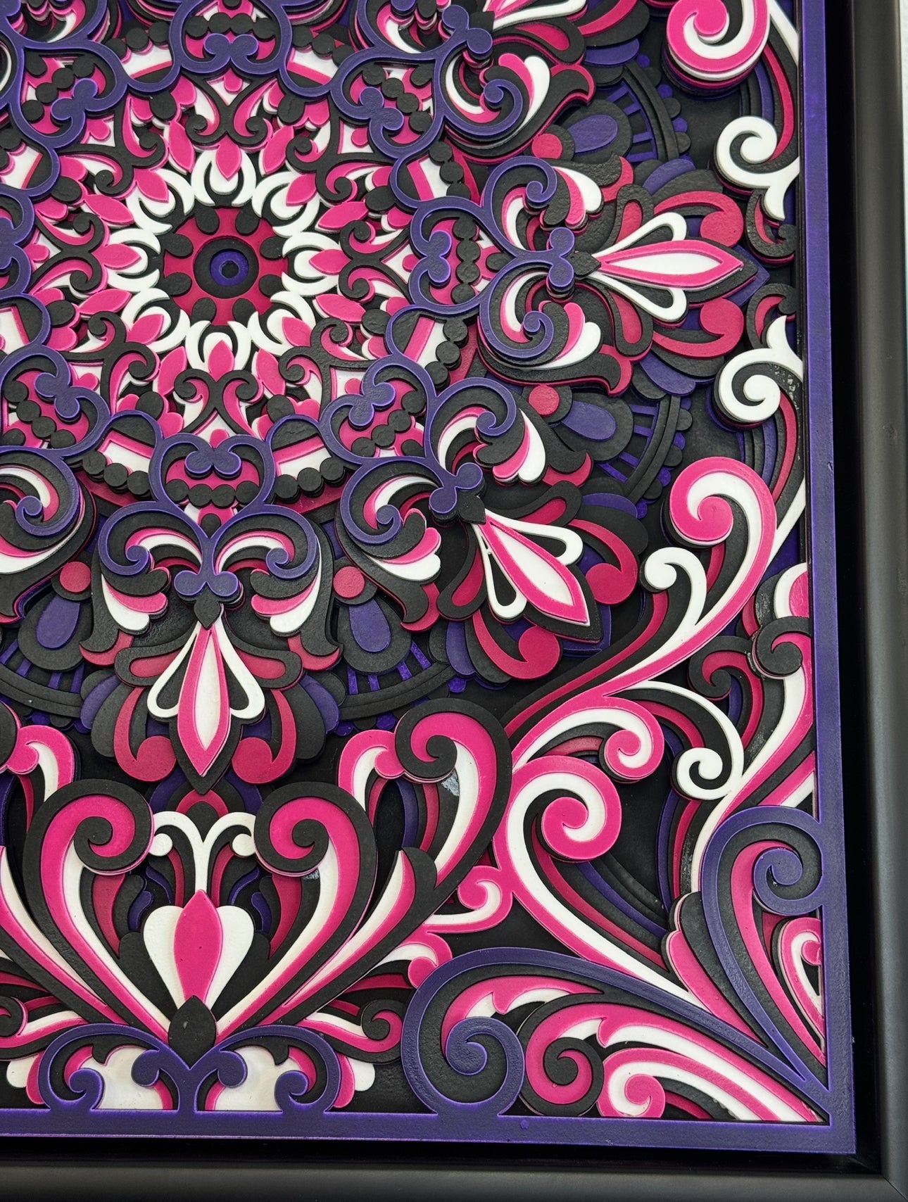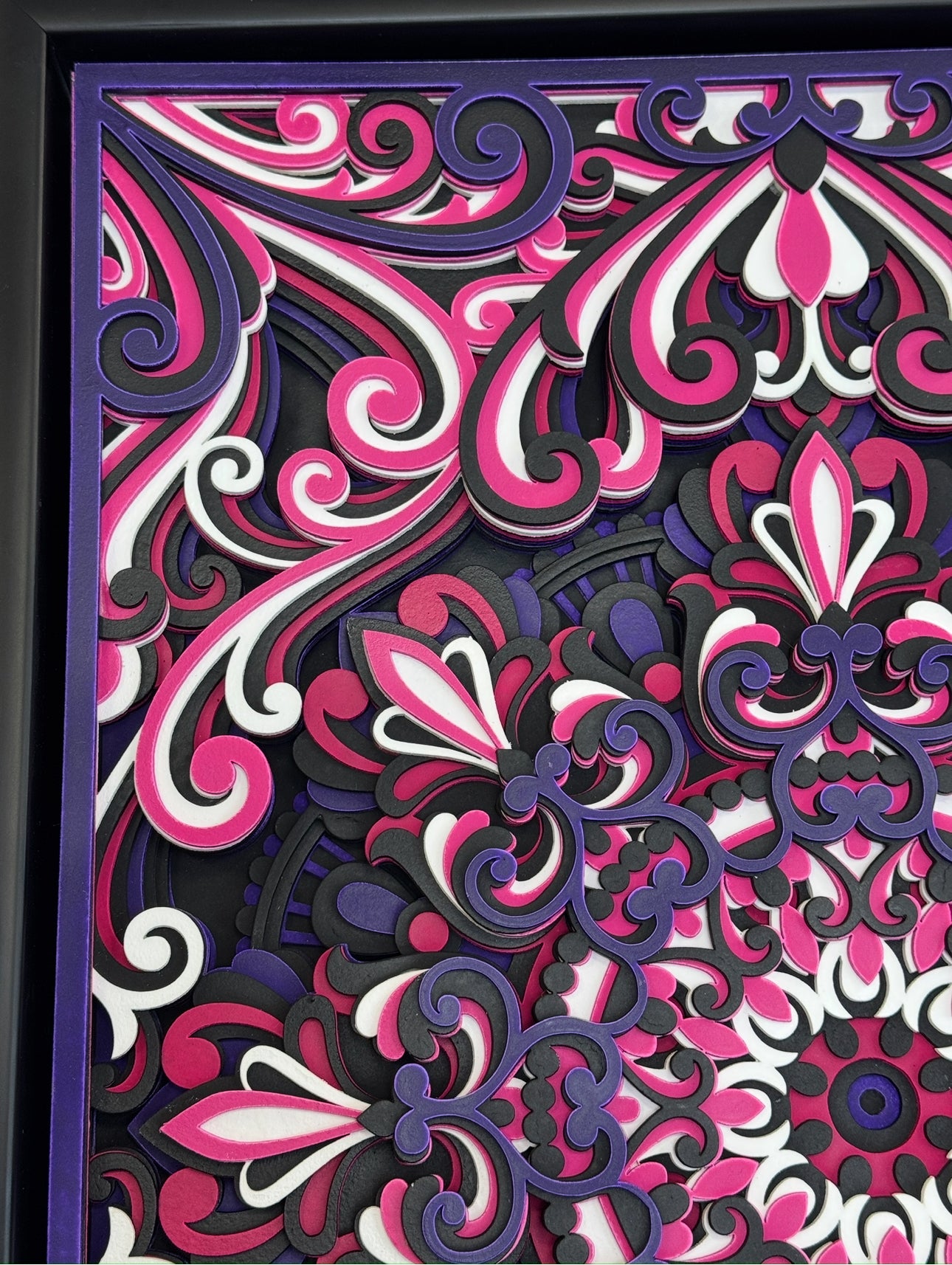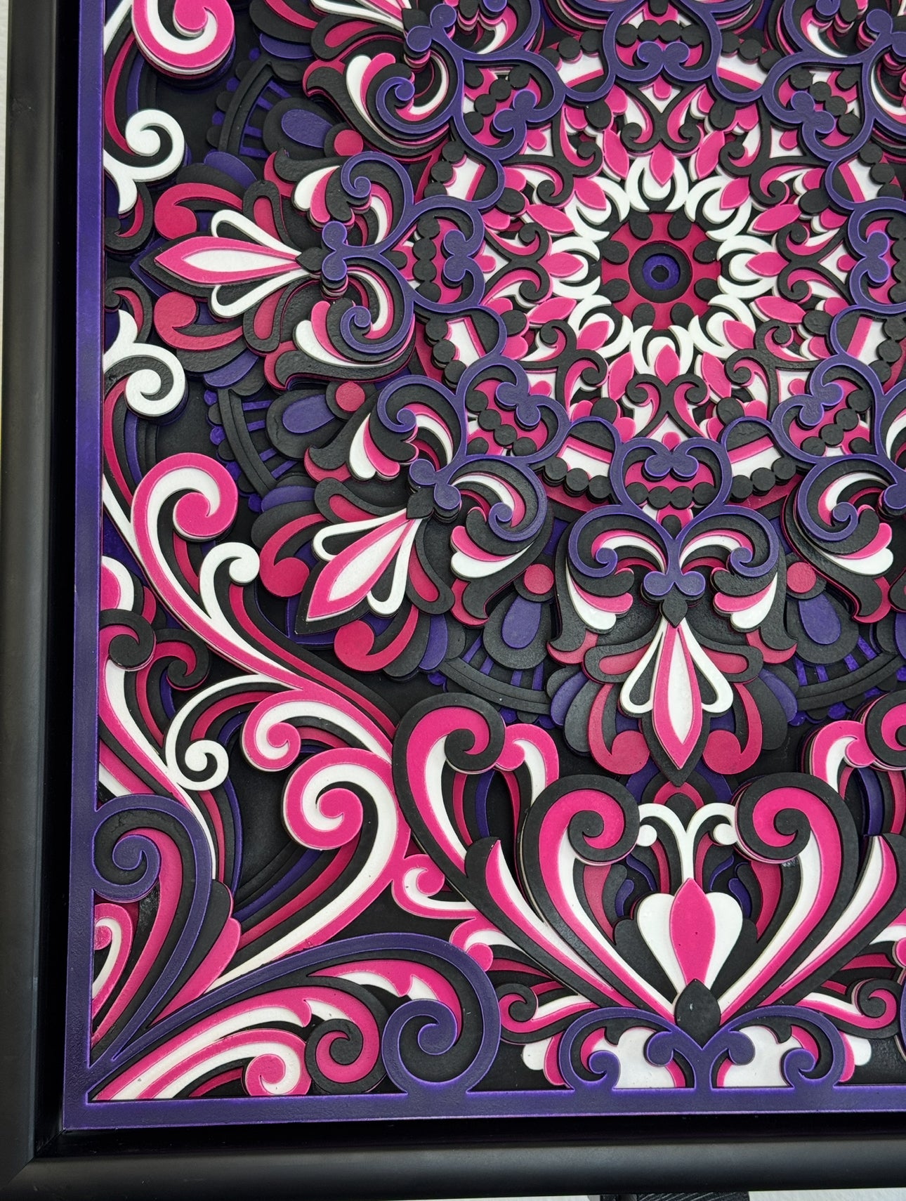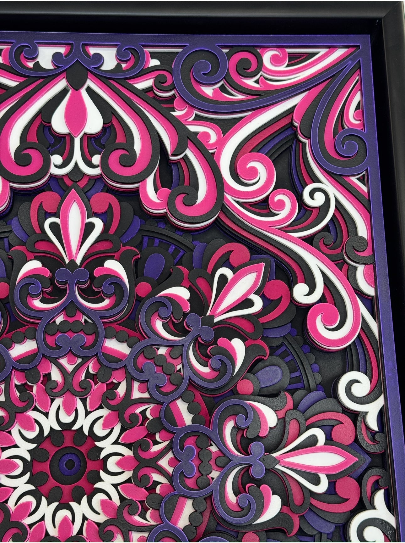 The Multi Layered Galaxy artwork is made with 12 layers of fine cut wood. It represents the inner world of the dreamer – complex, structured, yet flowing with emotion. Every layer is cut from high-quality material and stacked with precision to create a powerful sense of depth and motion. The mandala-inspired patterns reflect balance, creativity, and transformation – echoing the journey every artist or entrepreneur takes to reach their full potential.