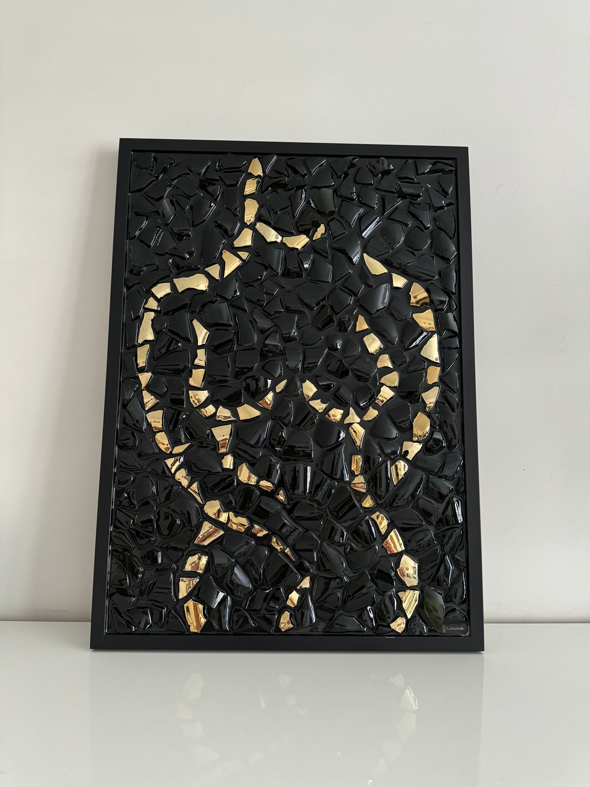 When you look at the frame you see a confident woman, with the right arm towards the legs and the left arm behind the body.